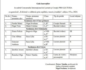 Concursul Internațional ,,Pro Lectura 2024”, ediția a VI-a, a reprezentat o adevărată provocare în prag de primăvară! Felicitări talentaților participanți, mulțumiri mentorilor neobosiți ce au reușit să-i îndrume pe elevii noștri pe calea succesului, valorificând Folclorul, trecutul și tradițiile neamului nostru! Astfel au fost nominalizați elevii IPLT „M.Eminescu”, or.Anenii, la Gala Laureaților!